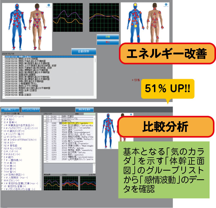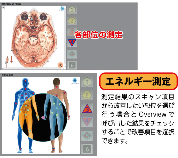 影響がある部位の把握 ・・・身体部位、感情、毒素などを色彩とデータで理解